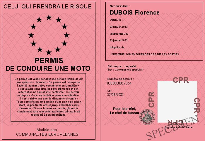 Envoyez par email le Permis de conduire une moto personalisé
