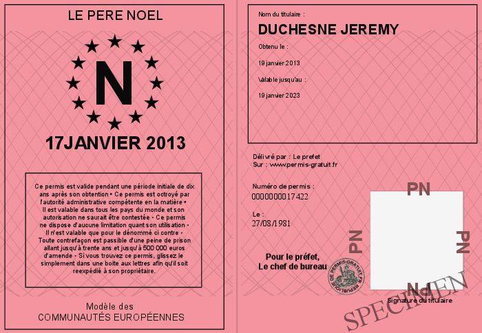 Envoyez par email le 17JANVIER 2013 personalisé par la LE PERE NOEL ! Personnaliser mon permis