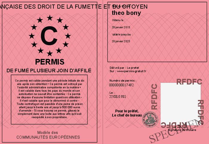 Envoyez par email le Permis de fumé plusieur join d'affilé personalisé