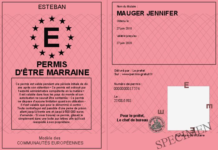 Envoyez par email le Permis d'être marraine personalisé par la ESTEBAN ! Personnaliser mon permis