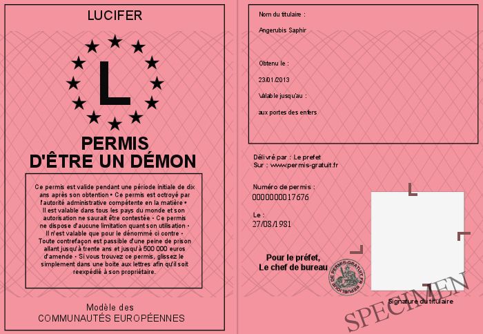 Envoyez par email le Permis d'être un Démon personalisé par la LUCIFER ! Personnaliser mon permis