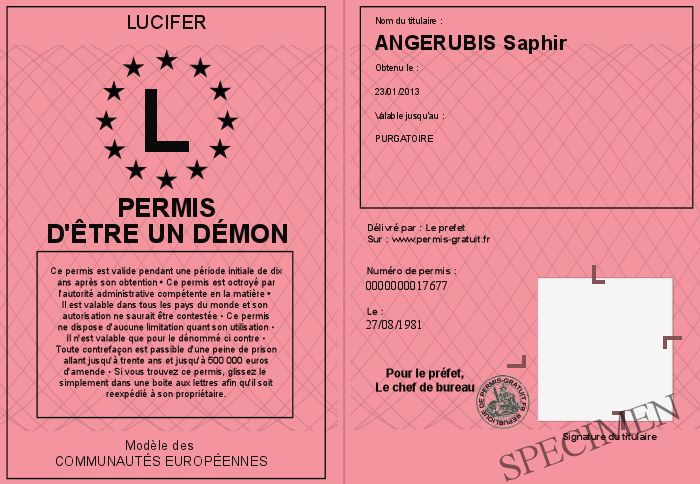Envoyez par email le Permis d'être un démon personalisé par la LUCIFER ! Personnaliser mon permis