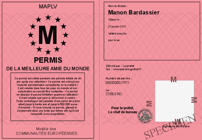Envoyez par email le Permis de la meilleure amie du monde personalisé