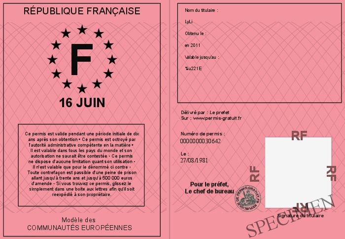 Envoyez par email le 16 juin personalisé par la République Française ! Personnaliser mon permis