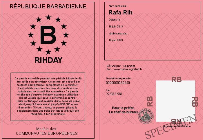 Envoyez par email le RihDay personalisé par la République Barbadienne ! Personnaliser mon permis