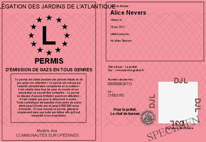 Envoyez par email le Permis d'émission de gazs en tous genres personalisé
