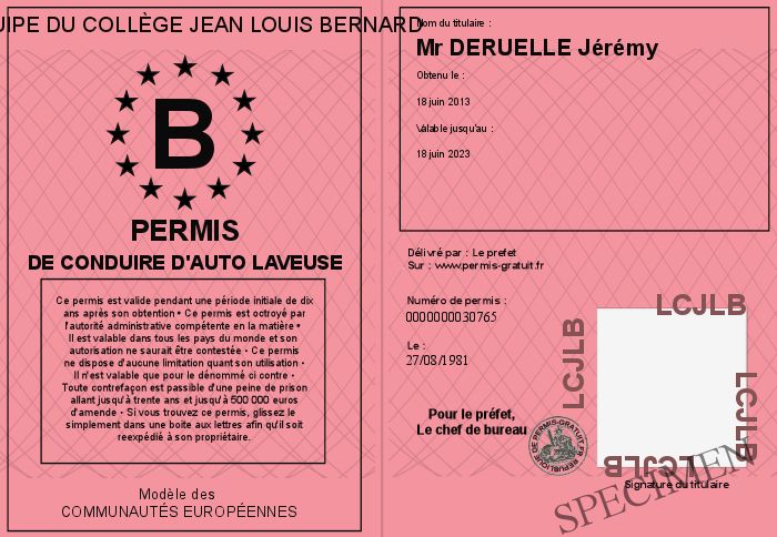 Envoyez par email le Permis de conduire d'auto laveuse personalisé