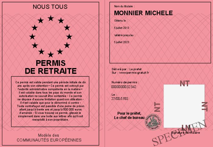 Envoyez par email le PERMIS DE RETRAITE personalisé par la NOUS TOUS ! Personnaliser mon permis