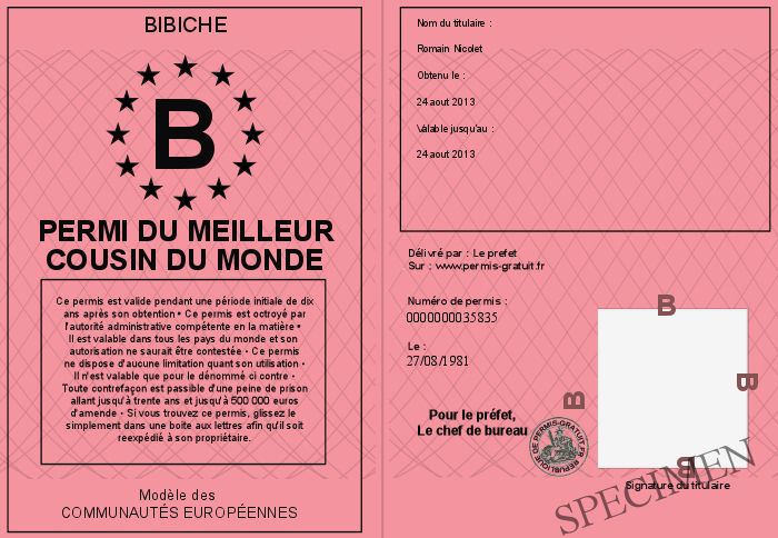 Envoyez par email le Permi du meilleur cousin du monde personalisé