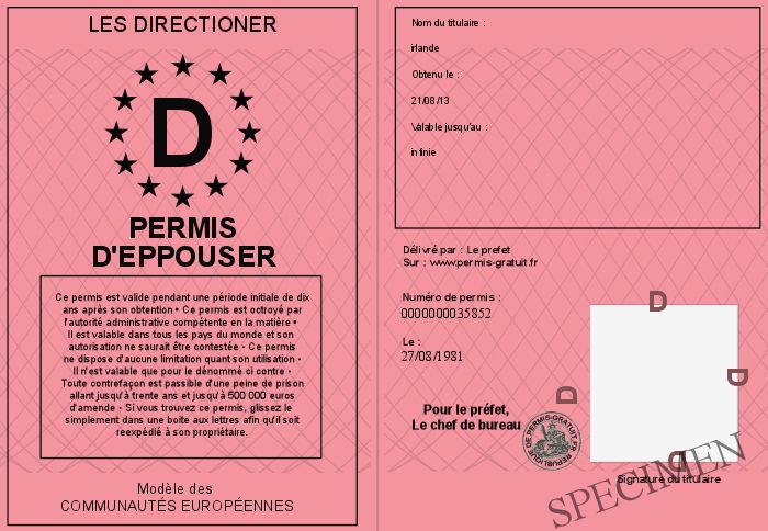 Envoyez par email le Permis d'eppouser personalisé par la les directioner ! Personnaliser mon permis