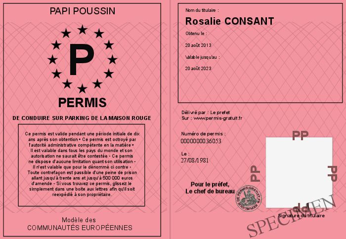 Envoyez par email le Permis de conduire sur parking de la MAISON ROUGE personalisé