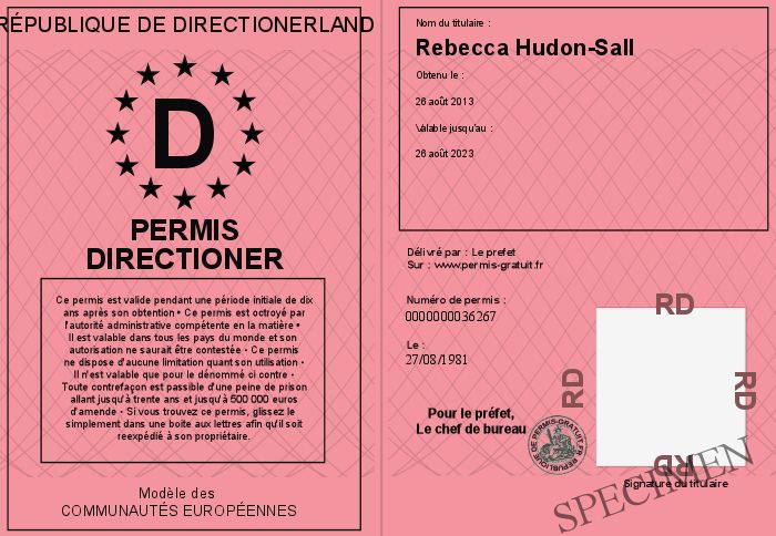 Envoyez par email le Permis Directioner personalisé
