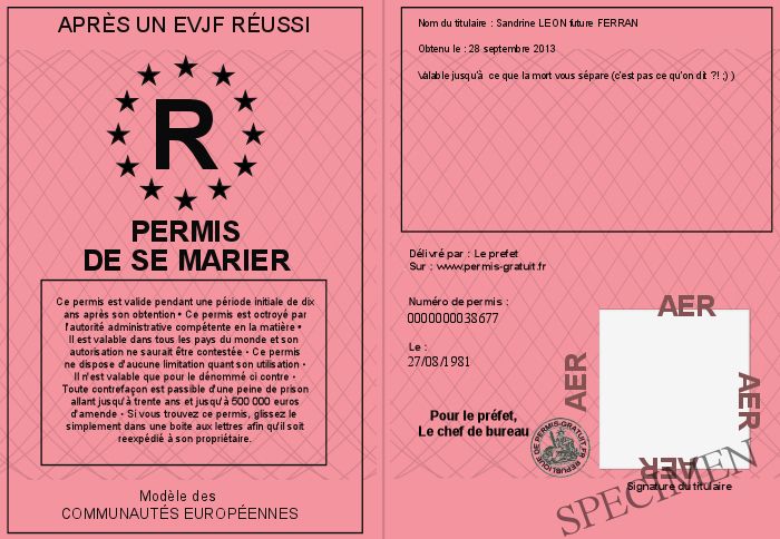 Envoyez par email le Permis de se marier personalisé