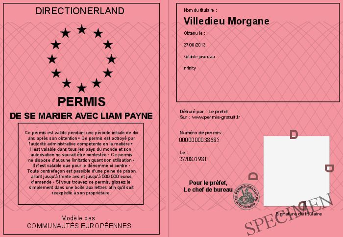 Envoyez par email le Permis de se marier avec Liam Payne personalisé