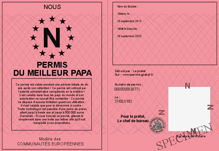 Envoyez par email le permis du meilleur papa personalisé par la NOUS ! Personnaliser mon permis