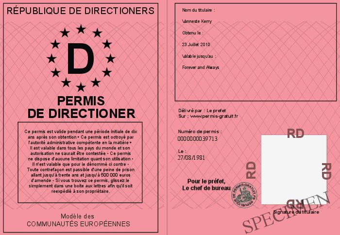 Envoyez par email le Permis de Directioner personalisé