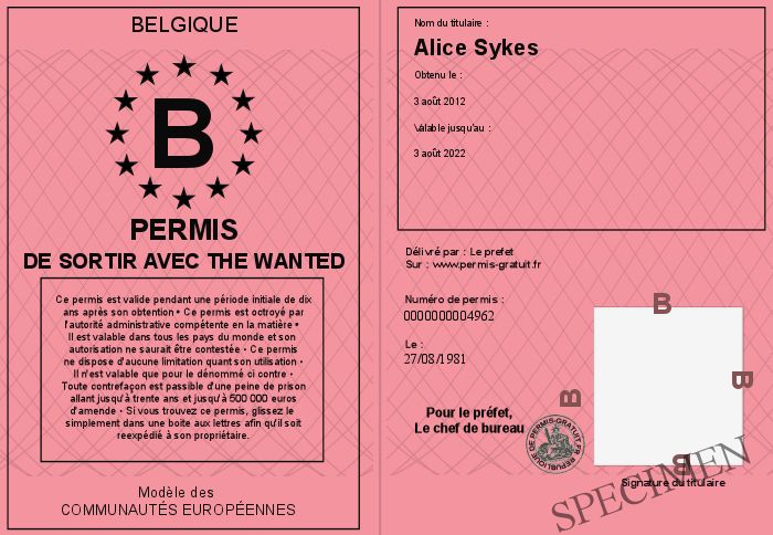 Envoyez par email le Permis de sortir avec The Wanted personalisé