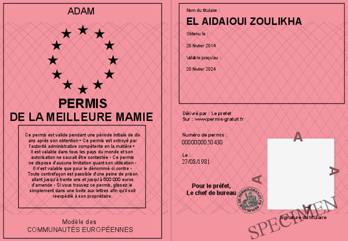 Envoyez par email le PERMIS DE LA MEILLEURE MAMIE personalisé par la ADAM ! Personnaliser mon permis