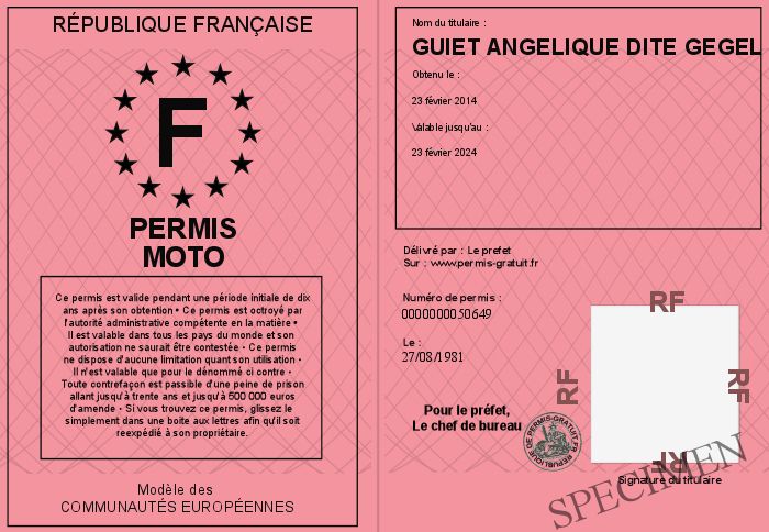 Envoyez par email le Permis Moto personalisé par la République Française ! Personnaliser mon permis