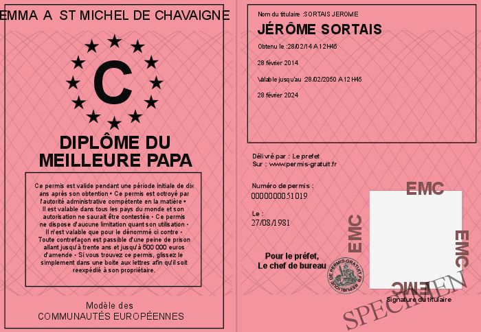 Envoyez par email le DIPLÔME DU MEILLEURE PAPA personalisé