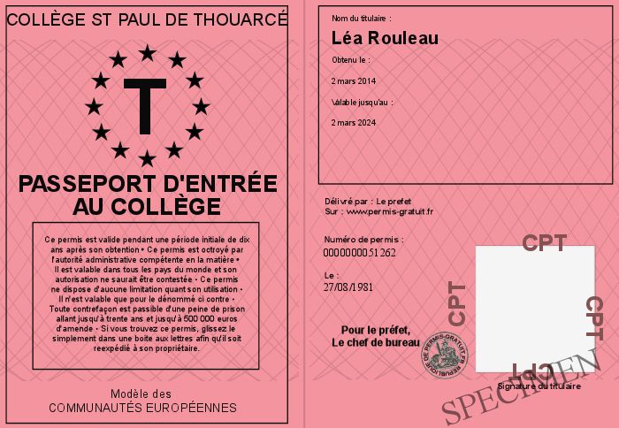 Envoyez par email le Passeport d'entrée au collège personalisé