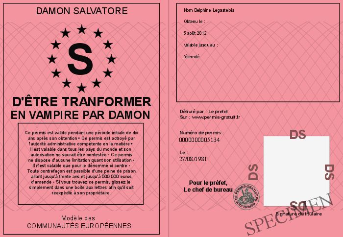 Envoyez par email le d'être tranformer en vampire par damon personalisé