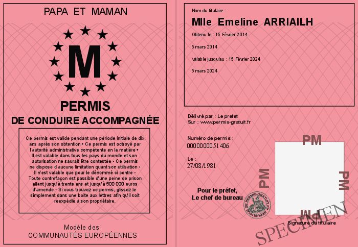 Envoyez par email le Permis de conduire accompagnée personalisé