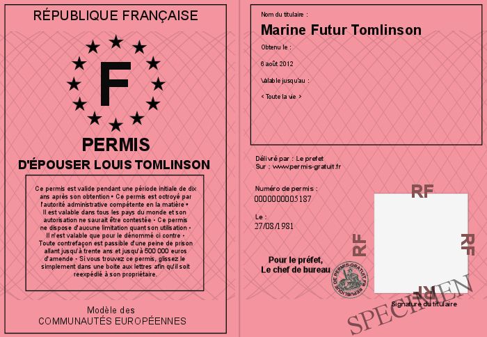 Envoyez par email le Permis d'épouser Louis Tomlinson personalisé