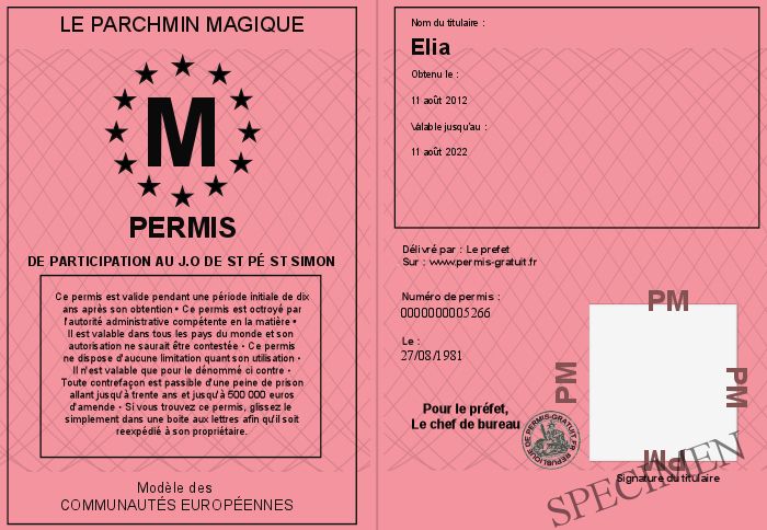 Envoyez par email le Permis de participation au J.O de St Pé St Simon personalisé