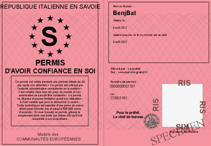 Envoyez par email le Permis d'avoir confiance en soi personalisé
