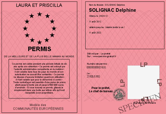 Envoyez par email le Permis de La meilleure et de la plus belle maman au monde personalisé
