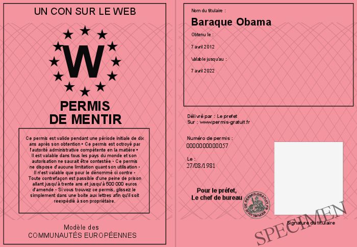 Envoyez par email le Permis de mentir personalisé par la un con sur le web ! Personnaliser mon permis