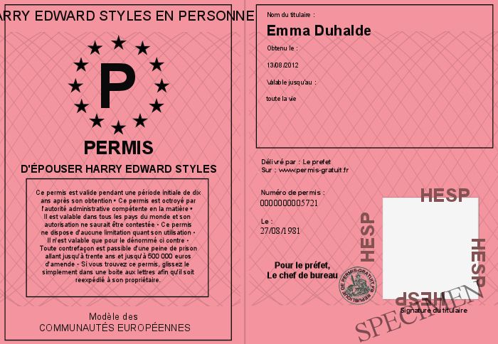 Envoyez par email le Permis d'épouser Harry Edward Styles personalisé
