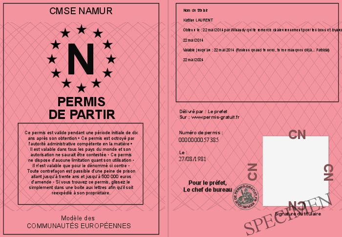 Envoyez par email le Permis de partir personalisé par la CMSE Namur ! Personnaliser mon permis