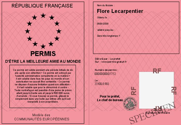 Envoyez par email le Permis d'être la meilleure amie au monde personalisé