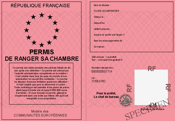 Envoyez par email le Permis de ranger sa chambre personalisé