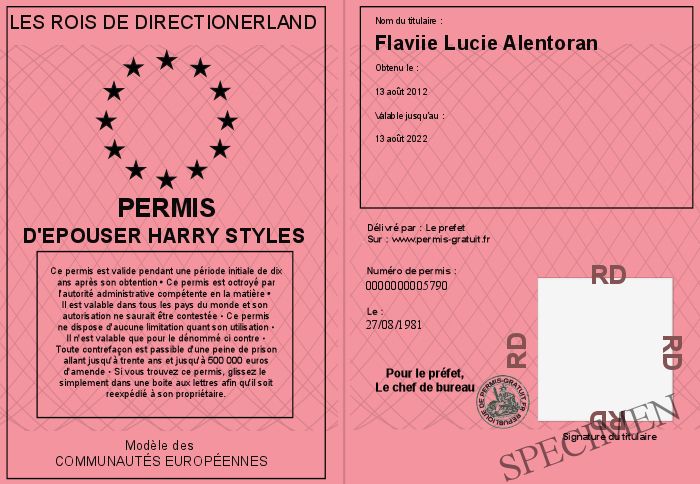 Envoyez par email le Permis D'epouser Harry Styles personalisé