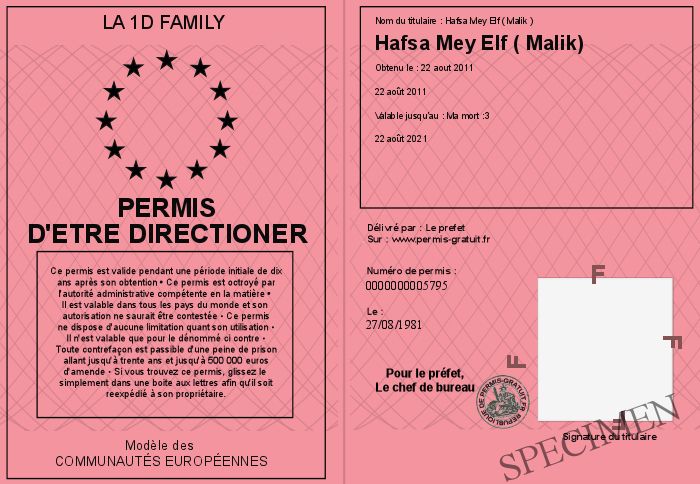 Envoyez par email le Permis d'etre Directioner personalisé