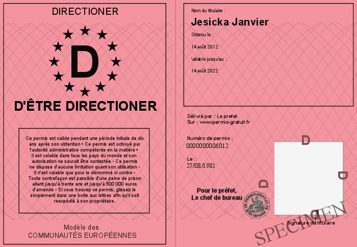 Envoyez par email le D'être directioner personalisé par la Directioner ! Personnaliser mon permis