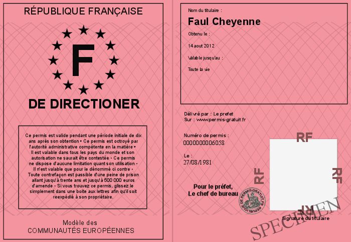 Envoyez par email le De directioner personalisé par la République Française ! Personnaliser mon permis