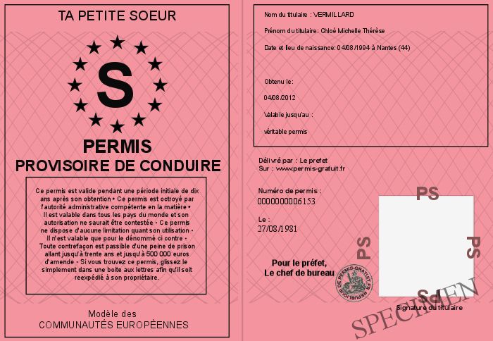 Envoyez par email le Permis provisoire de conduire personalisé