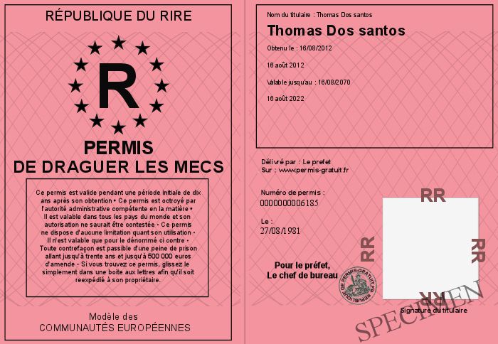 Envoyez par email le Permis de draguer les mecs personalisé