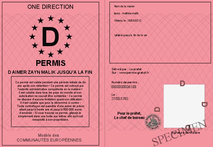 Envoyez par email le permis d aimer zayn malik jusqu'a la fin personalisé