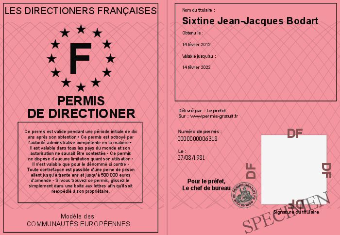 Envoyez par email le Permis de Directioner personalisé