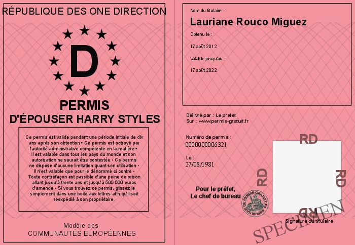 Envoyez par email le Permis D'épouser Harry Styles personalisé
