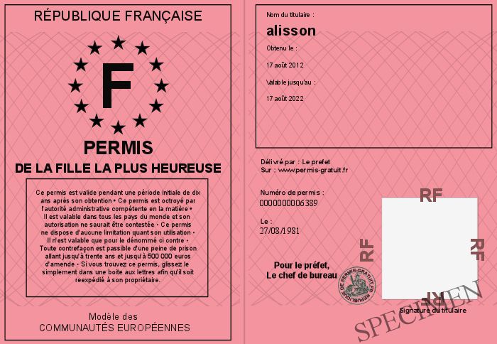 Envoyez par email le Permis de la fille la plus heureuse personalisé