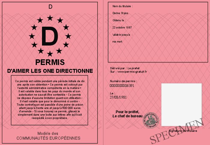Envoyez par email le Permis d'aimer les One Directionne personalisé