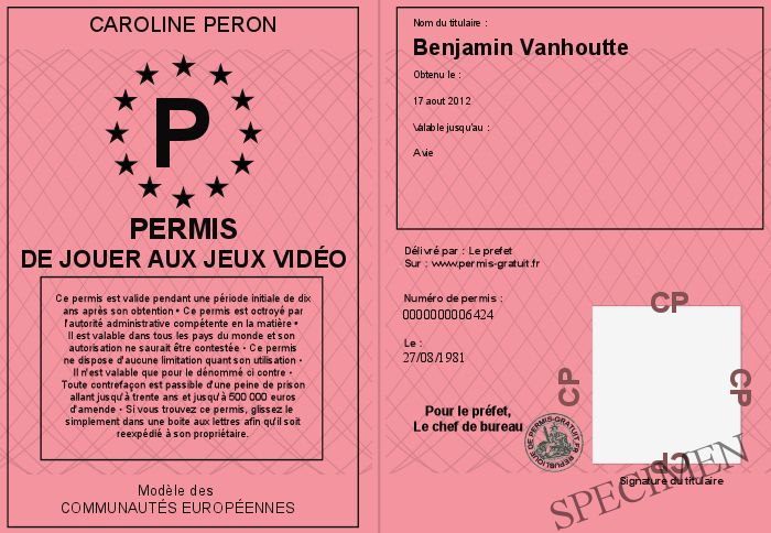 Envoyez par email le Permis de jouer aux jeux vidéo personalisé