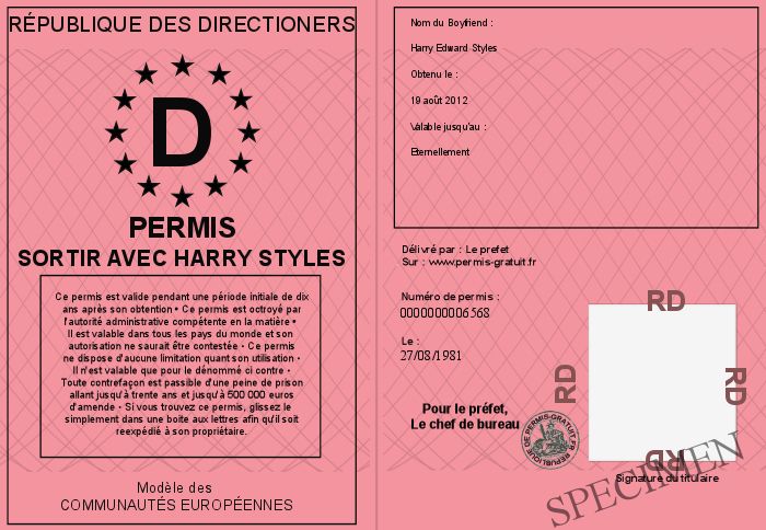 Envoyez par email le Permis Sortir avec Harry Styles personalisé