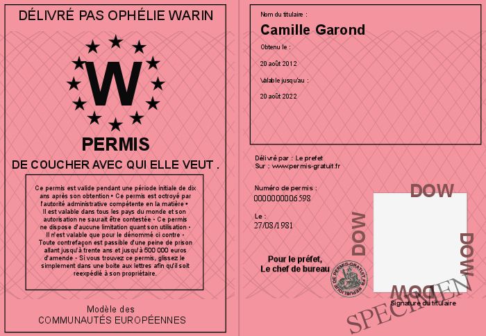Envoyez par email le Permis De Coucher avec qui elle veut . personalisé